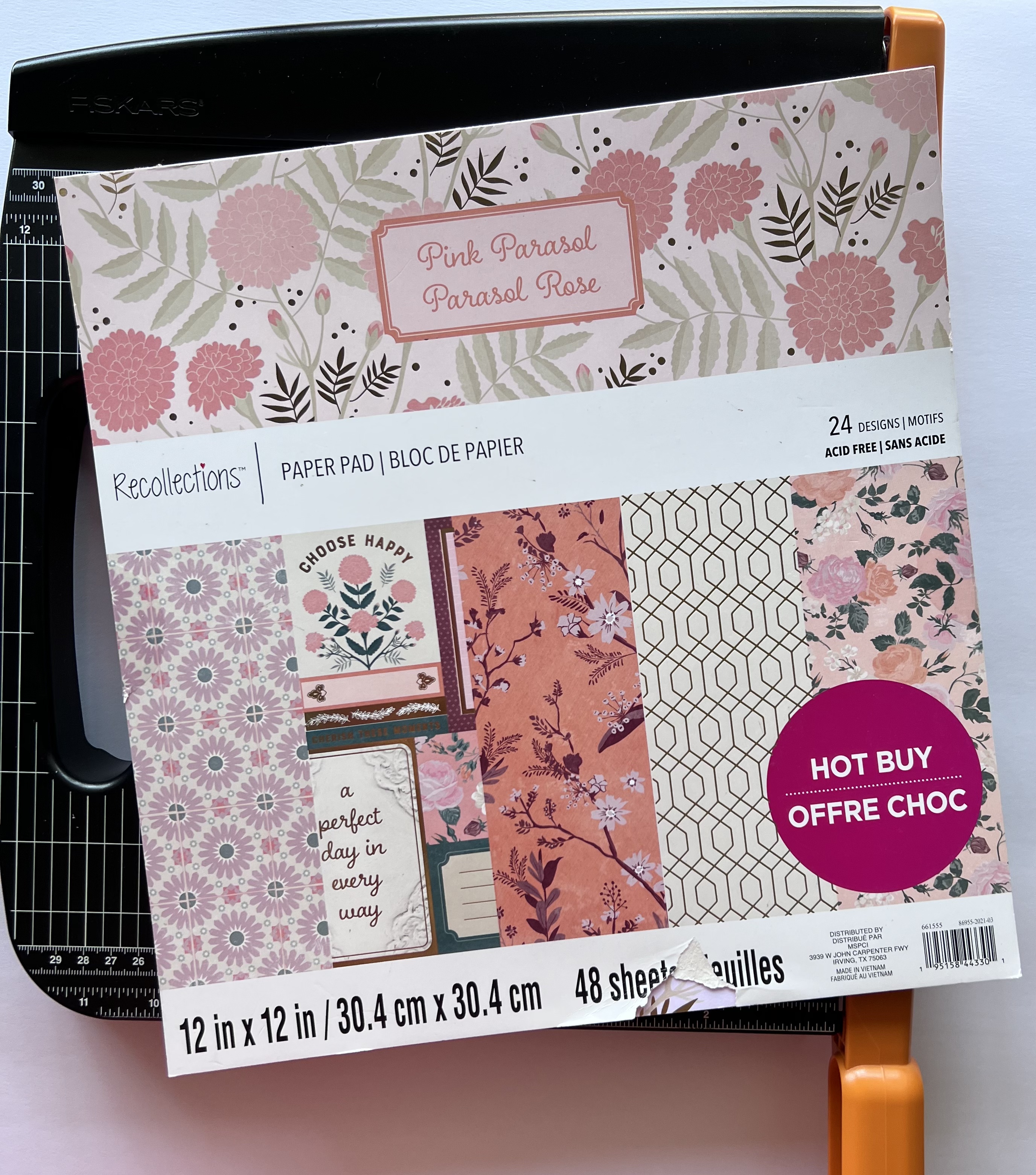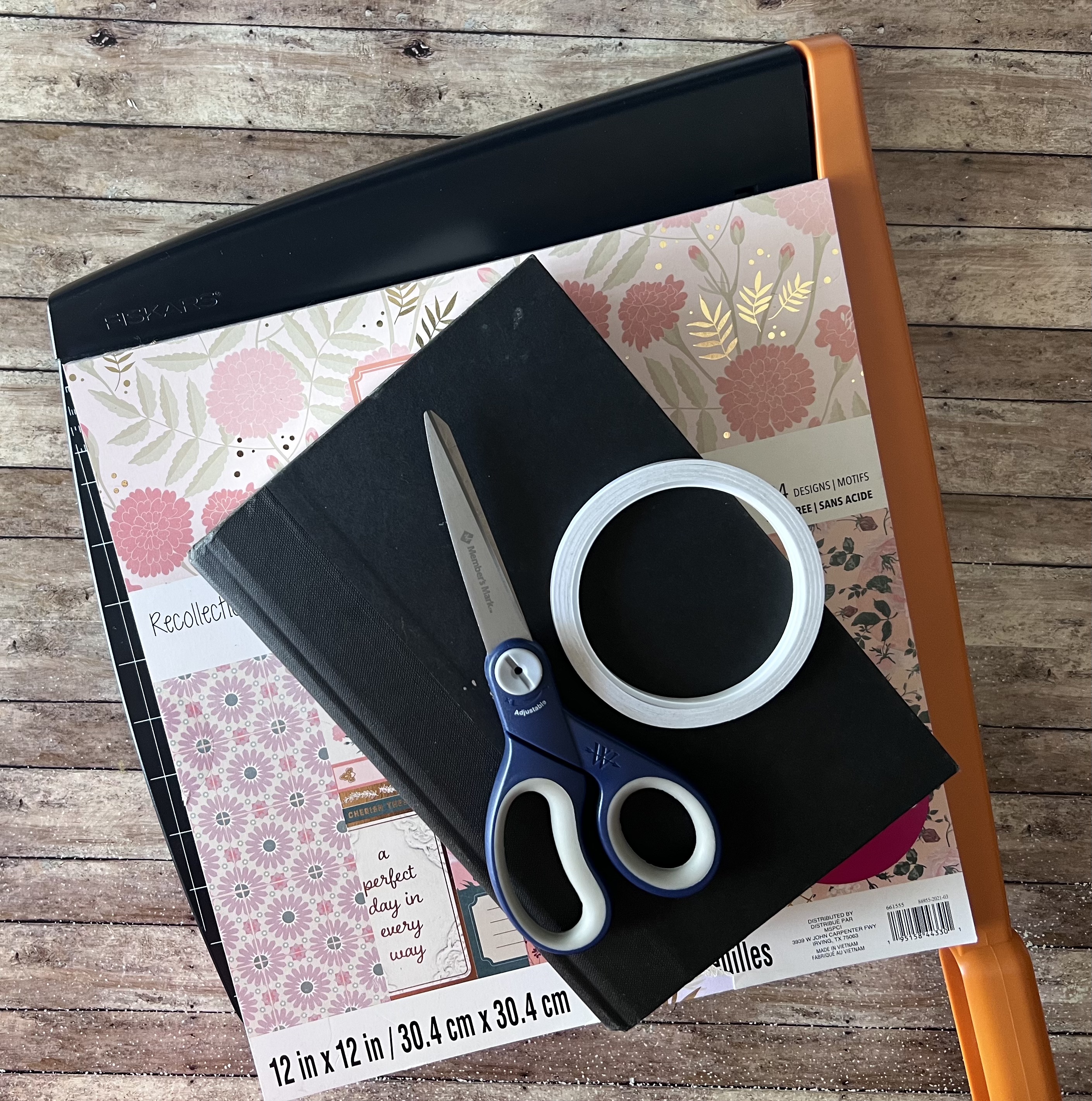 Choose one sheet of paper if the book is small enough. If the 12×12 paper cannot fit around the book and form flaps, then 2 sheets are needed. Think of your rooms decor to help you choose your patterns. The sheet that will form the flaps can be a plain pattern since it will not be seen. Feel free to choose whatever pattern/color that you would like.